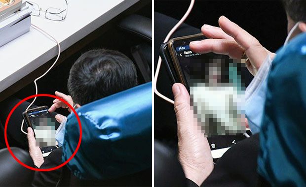 내년도 예산안을 논의하는 자리에서 스마트폰으로 음란물을 보던 태국 의원이 언론 카메라에 딱 걸렸다.