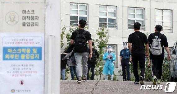 순경공채 필기시험이 치러진 지난 19일 오전 서울 중구 한양공업고등학교에서 응시생들이 시험장으로 향하고 있다. 뉴스1 |