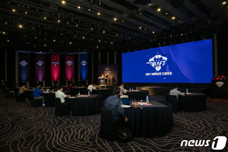 (서울=뉴스1) = 21일 서울 웨스틴조선호텔 그랜드볼룸에서 사상 첫 비대면 방식으로 '2021 KBO 신인 드래프트'가 진행되고 있다.