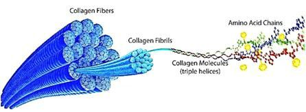 콜라겐은 거대 분자의 단백질이다. 단백질은 소화라는 과정을 거쳐 아미노산(간혹 펩타이드)으로 분해되어야 비로소 흡수된다. 우유나 고기 등 여타 단백질도 마찬가지. 소화되고 나면 단백질은 본연의 성질은 사라지고 모두 20종류의 아미노산으로 변한다. 우유에서 나온 거나 콜라겐에서 나온 거나 구별이 안 된다는 거다. 단백질에는 종류를 막론하고 먹거나 발라서 그대로 흡수돼 우리 몸속에서 고유의 기능을 발휘하는 것은 없다. 특히 콜라겐은 조직 속에 있을 때는 수백, 수천 가닥이 그림과 같이 꼬여서 거대한 복합구조를 이루고 있다. 종류는 달라도 머리카락과 비슷한 구조다.