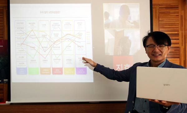 안진훈 브레인OS연구소 대표가 화상솔루션을 활용해 브레인 코칭 서비스를 제공하고 있다. [김재훈 기자] |