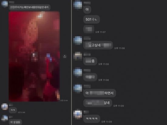 가게를 방문한 여성들도 이들의 타겟이 됐다. 손님들의 사진을 몰래 찍어 공유하며 "이 X들 XX 시끄럽지 않더냐"고 말하는가 하면 여성들이 다니는 대학과 과를 언급하며 "XXX들이 공부나 하지"라고 말했다.