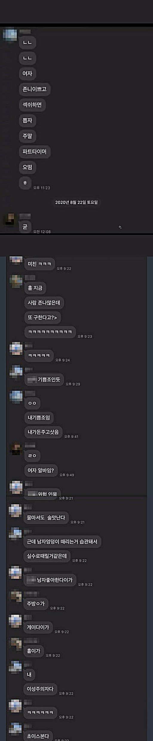 카카오톡 단체 대화방에서 여성 손님과 아르바이트 면접생을 상대로 욕설과 성희롱이 섞인 대화(사진)를 주고 받아 논란을 빚은 경남 진주 가좌동 소재 술집 ‘진주 1943’의 아르바이트 직원들이 전원 해고됐다. 아울러 이 술집의 대표는 프랜차이즈 본사와 가맹 계약을 해지했다며 폐업 의사를 밝혔다.