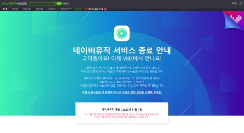 네이버뮤직이 11월 1일부로 완전시 서비스를 종료한다. 출처 | 네이버뮤직 |