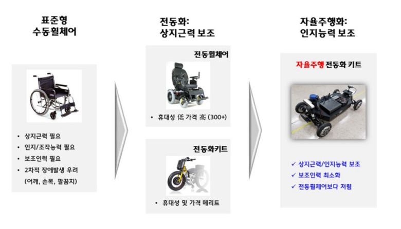 과제 총괄 책임자인 김규범 슈어모빌리티 이사는 “지난해 기준 국내 장애인 중 150만명 이상이 외부의 도움이 필요한 지체·뇌병변 장애인”이라며 “현재 많이 보급되는 있는 수동 휠체어는 상지근력이 필요한 취약점이 있고 전동식 휠체어는 인지능력이 부족한 경우 사용 어려움이 있다”고 말했다.