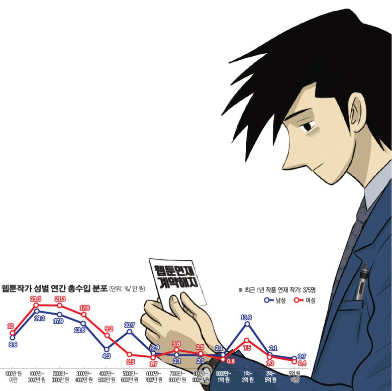 카카오페이지 관계자는 “초기 웹툰 산업에는 유료 모델이 없어 작가들이 수익을 가져가기 어려웠다”며 “에이전시 체제가 들어오고 여러 지원책이 안착함에 따라 작가들의 권익이 보호되는 측면이 있다”고 했다.