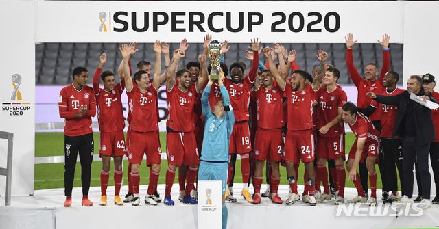 [서울=뉴시스] 박지혁 기자 = 독일 프로축구 분데스리가 바이에른 뮌헨이 전 시즌 분데스리가 우승팀과 독일축구협회(DFB) 포칼 우승팀이 대결하는 독일슈퍼컵에서 웃었다.