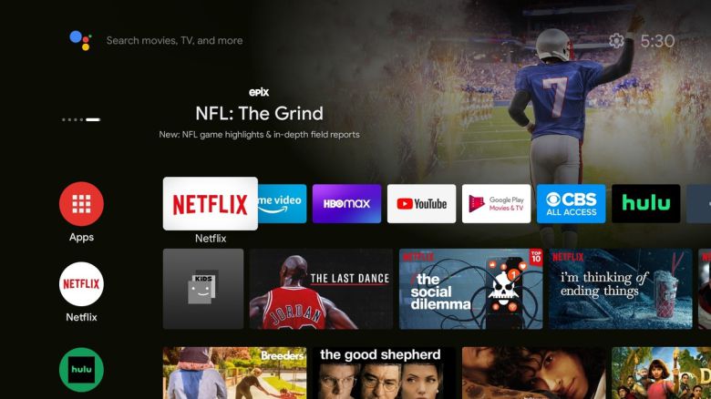 안드로이드 TV는 맞춤화가 가능한 홈 스크린 열을 제공한다. 각 앱의 추천 콘텐츠가 표시된다. © JARED NEWMAN / IDG