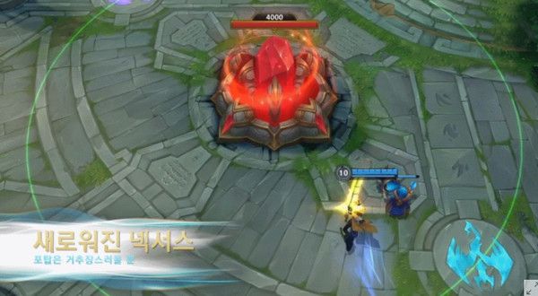 또한 공격로를 따라서 전진하다 보면 억제기가 없다는 것을 확인할 수 있을 것입니다. 이는 세번째 포탑에 포함시켰고 넥서스 주변 포탑도 없앴습니다. 넥서스가 자체적으로 공격 능력을 지니고 있기 때문입니다.