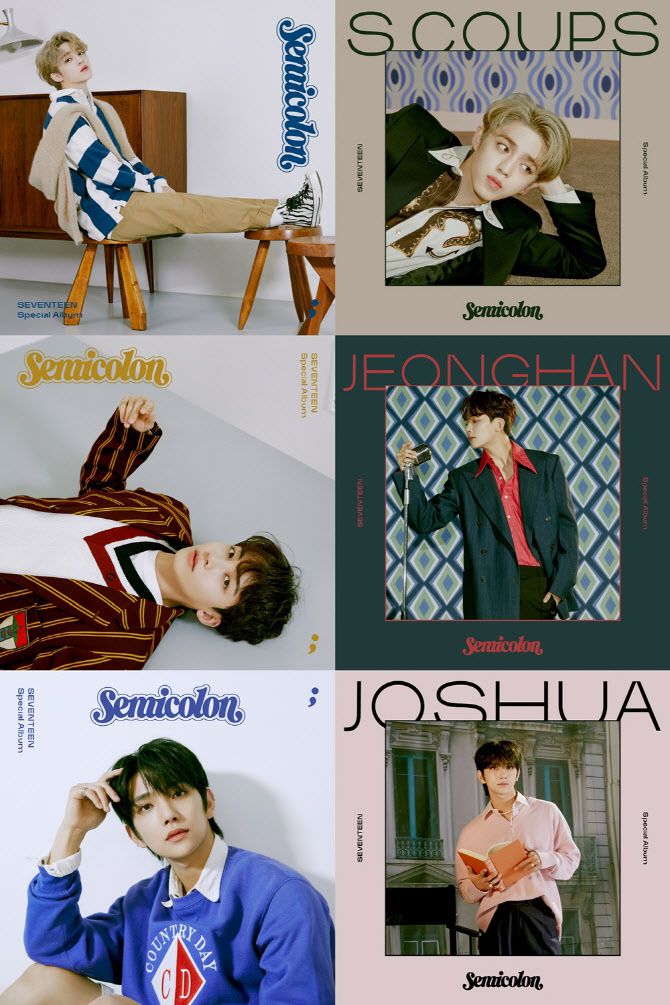 공개된 사진 속 에스쿱스, 정한, 조슈아는 청량에 성숙을 더한 아우라로 다채로운 매력을 뽐내고 있으며 레트로한 무드가 돋보이는 오피셜 포토를 통해 스페셜 앨범 ‘세미콜론’에 대한 기대감을 한껏 높였다.