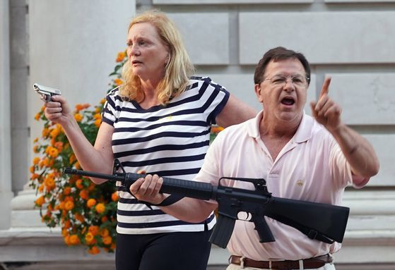 마크 맥클로스키(61)와 그의 아내 퍼트리샤(63)는 백인 경찰의 과잉 진압으로 흑인 조지 플로이드가 사망한 뒤인 지난 6월 인종차별 반대 시위대를 향해 “가라”고 소리치며 총을 겨눴다. 시위대가 자신의 집 인근을 거쳐 간다는 이유에서였다. 시위대를 사유지에서 몰아내겠다며 남편은 M16을 개량한 것으로 보이는 자동 소총을, 아내는 권총을 뽑아 들었다.