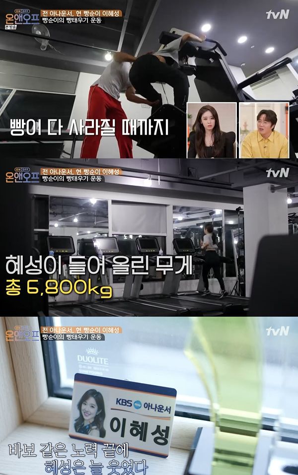 이날 이혜성은 평소 빵을 좋아하지만 몸매를 유지하기 위한 노력을 밝혔다. 칼로리 소모를 위해 하루 총 6,800kg을 들어올리고 또 스쿼트를 수도 없이 하는 모습을 보인 이혜성. 그는 "러닝으로 20km, 1시간 45분동안 달린다. 요즘에는 근력 위주로 하고 있다"고 설명했다.
