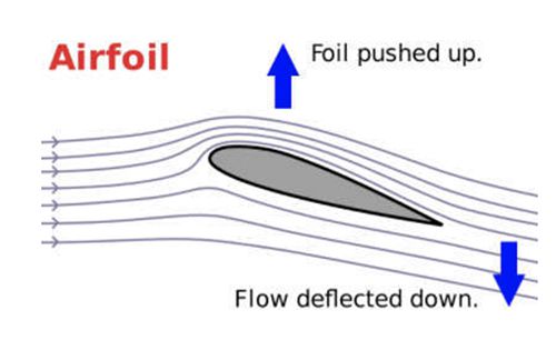 뉴턴2법칙(가속도의 법칙)에 의하면 시간에 따른 질량이나 속도 변화는 힘을 발생시킨다. 그림에서 왼쪽에서 오른쪽으로 흐르는 공기는 날개 부분을 지나면서 속도가 변하게 된다.