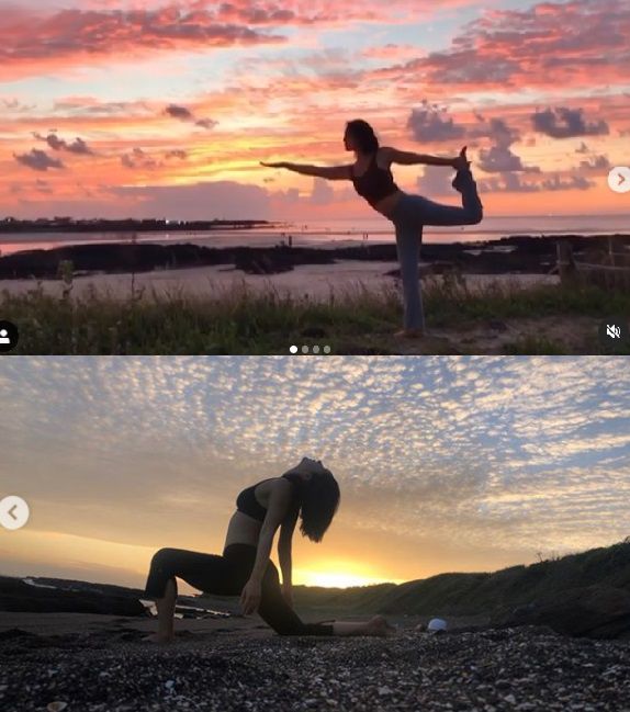 사진 속 윤진서는 요가복을 입고 자연을 배경으로 요가 동작을 취하고 있는 모습이 담겨있다.