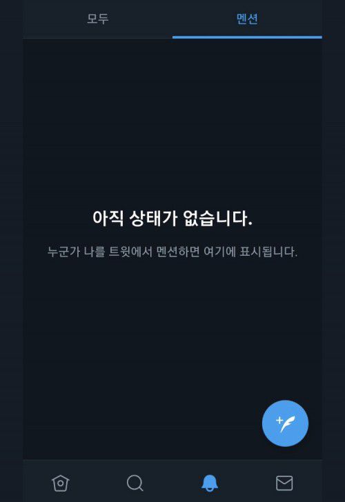 몇몇 트위터 이용자들은 오류 내용을 캡처해 공유하기도 했다. 사진에는 “아직 상태가 없습니다”라는 안내 메시지가 뜬다. 이어 하단에 “누군가 나를 트윗에서 멘션하면 여기에 표시됩니다”라고 적혀있다.