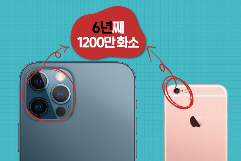 애플이 1200만 화소 카메라를 탑재한 아이폰12를 선보였다. 2015년 출시된 아이폰6S 이후 6년째 1200만 화소를 고수하는 셈이다.