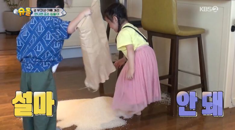 [엑스포츠뉴스 최희재 기자] 개리의 아들 하오와 조정치, 정인의 딸 조은이 쌀로 대형사고를 쳤다.