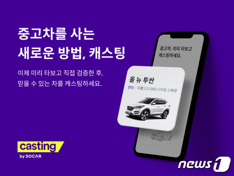 쏘카는 19일 캐스팅은 차를 미리 타보고 구매할 수 있는 온라인 중고차 플랫폼이라며 쏘카 애플리케이션(앱)에 캐스팅 메뉴가 새롭게 추가돼 이날 오후 2시부터 서비스를 시작한다고 밝혔다.