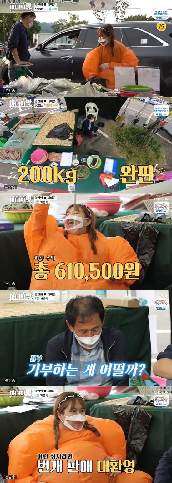 곧 장사가 재개됐고, 홍현희 어머니도 등장했다. 61만 원의 매출을 올렸고, 제이쓴 아버지는 매출액을 기부하겠다고 밝혔다.