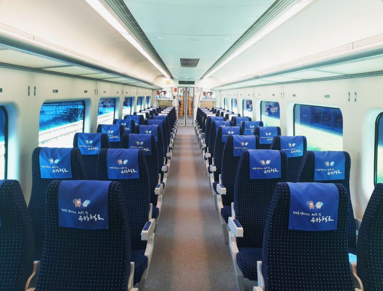 직통 열차 좌석은 일반 지하철처럼 7개의 좌석이 한 줄로 연결된 형태가 아니라 1인 1석이어서 앉았을 때 입석객과 마주하거나 접촉하지 않아 편안하다. 2∼5호에 있는 단독석은 테이블과 전기콘센트를 이용해 노트북 등의 전자기기를 사용하기에도 좋다. 차내 화장실은 4호차에 있다.