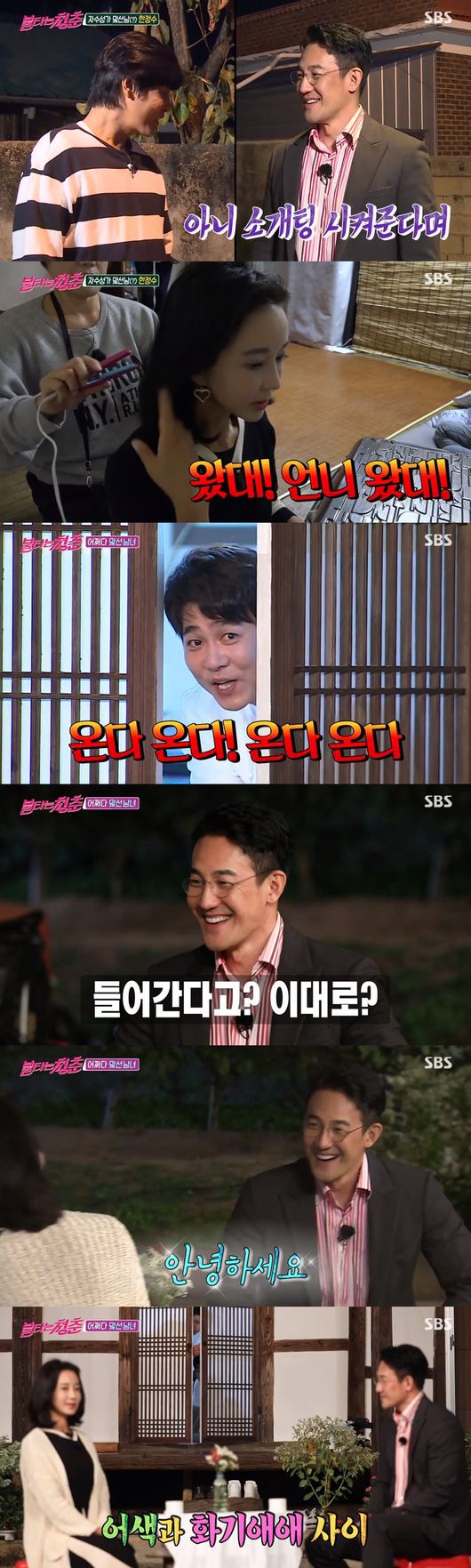 [사진=SBS 방송화면] '불타는 청춘'에서 배우 한정수와 가수 겸 연기자 곽진영의 깜짝 소개팅이 성사돼 화제를 모으고 있다.