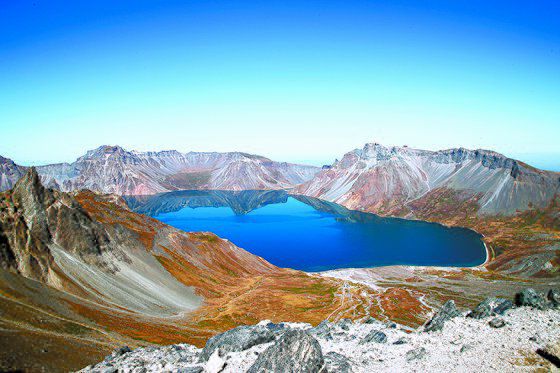 장군봉에서 바라본 천지. [평양사진공동취재단]
