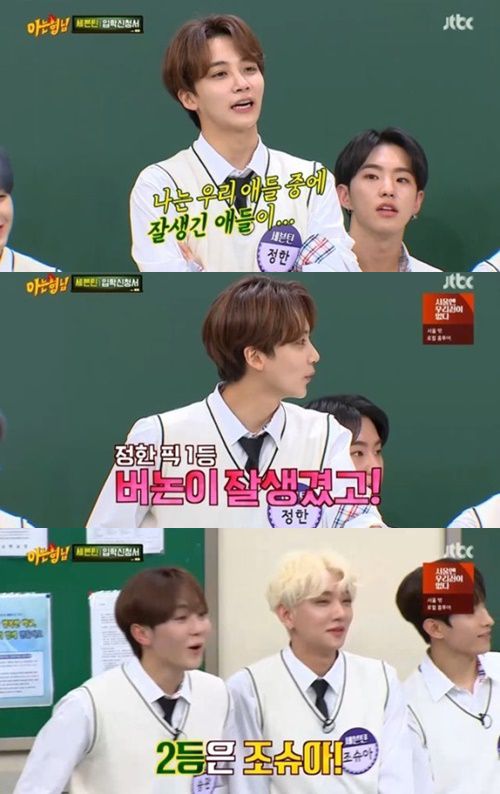 이날 ‘아형’ 멤버들은 세븐틴에게 외모 순위를 물었다.