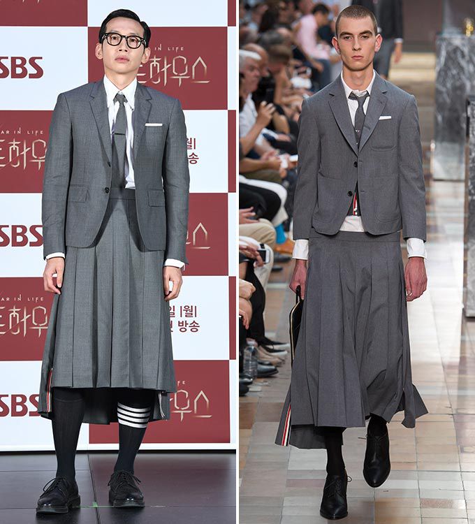 이날 봉태규가 선택한 의상은 패션 브랜드 '톰 브라운'(Thom Browne)의 2018 S/S 컬렉션 제품이다. 이는 톰 브라운이 남성복 컬렉션에서 선보인 것이다.