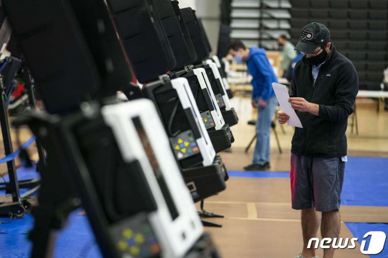 미국 워싱턴DC의 사전투표장에서 한 남성이 자신의 투표용지를 들고 고민하고 있다. © AFP=뉴스1 |