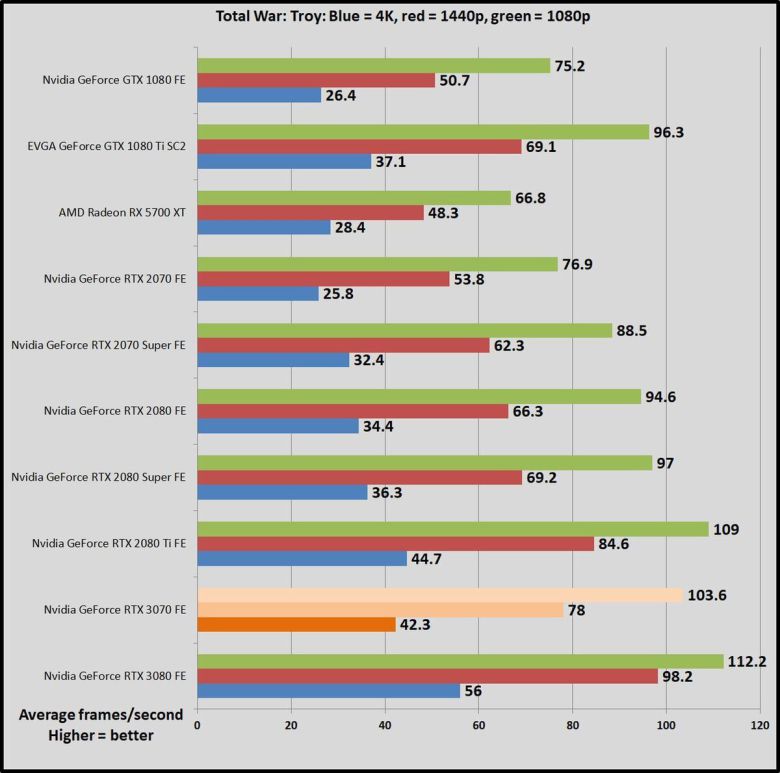 대답은 ‘그렇다’이다. 자세히 비교하면 더 나은 부분, 모자란 부분이 각각 존재한다. 그러나 전반적으로 지포스 RTX 3070은 절반 가격에 RTX 2080 Ti에 필적하는 게임 성능을 제공하는 제품이 맞다. 그리고 콘텐츠 제작 분야 일부에서는 더 그렇다. 분명히 이전 세대 RTX 2070을 앞선다. PC 게이머들 입장에서는 장족의 발전이다. 그러나 AMD가 카운터 펀치를 날릴 준비를 하고 있다. 29일 라데온 RX 6000 시리즈가 공개됐는데, 발표 후에도 지포스 RTX 3070이 계속 큰 관심을 끌지 여부는 지켜볼 문제다. 더 자세히 알아보자.