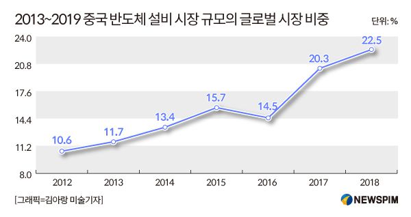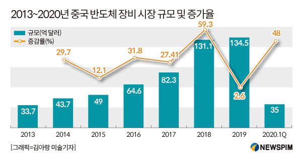 중국 산업분석 전문연구기관 첸잔(前瞻)의 보고서에 따르면, 2013~2020년 중국 반도체 시장 규모는 연도별로 편차가 있지만 평균 30%가 넘는 성장률을 기록하고 있다. 특히 2018년도는 전년 대비 성장률이 60%에 육박하고, 올해 1분기에도 지난해 대비 48%의 높은 성장률을 기록했다.