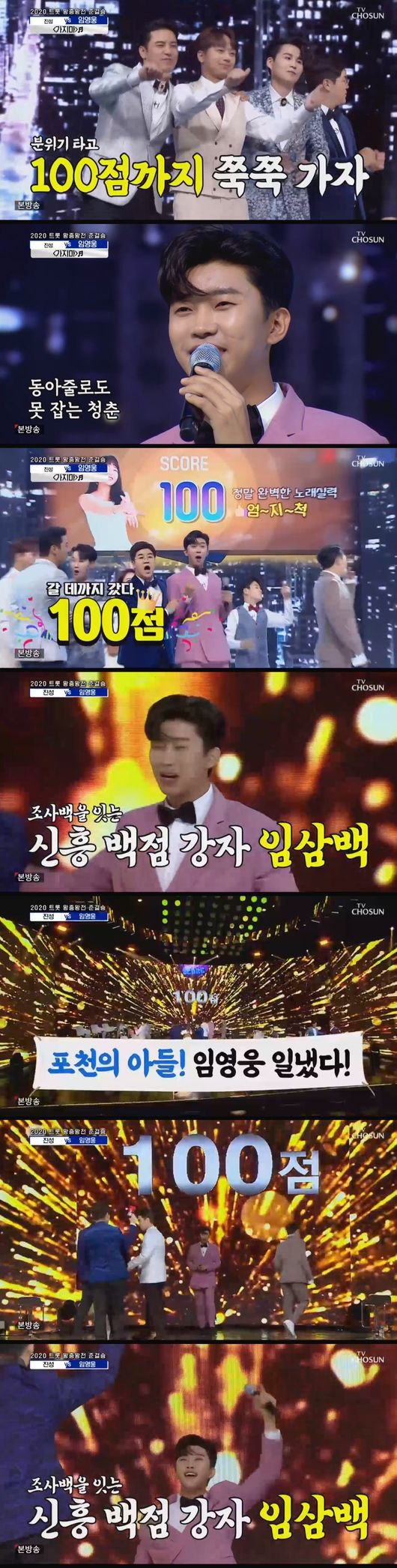 임영웅은 주특기인 감성으로 공격해 100점을 획득, 선공개로 기선제압했다. 예선과 본선 모두 백점으로 질풍가도를 달린 임영웅이었다.