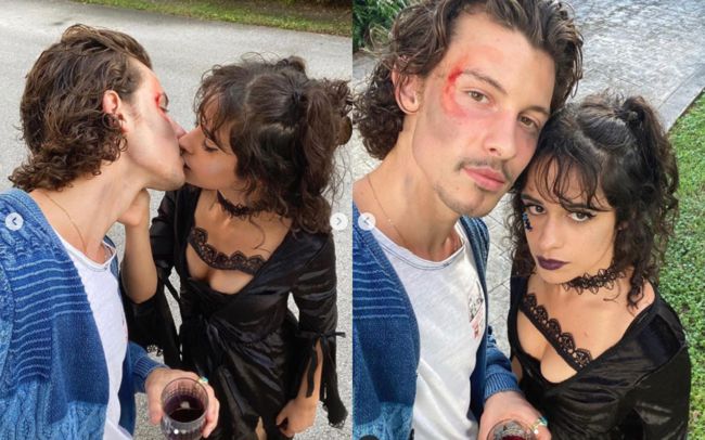검은 입술이 특징인 마녀로 변신한 그는 피 분장을 한 션 멘데스와 키스 사진을 찍어 보는 이들을 깜짝 놀라게 했다. 두 사람은 핼러윈 기념 커플 사진으로 팬들을 흐뭇하게 했다.