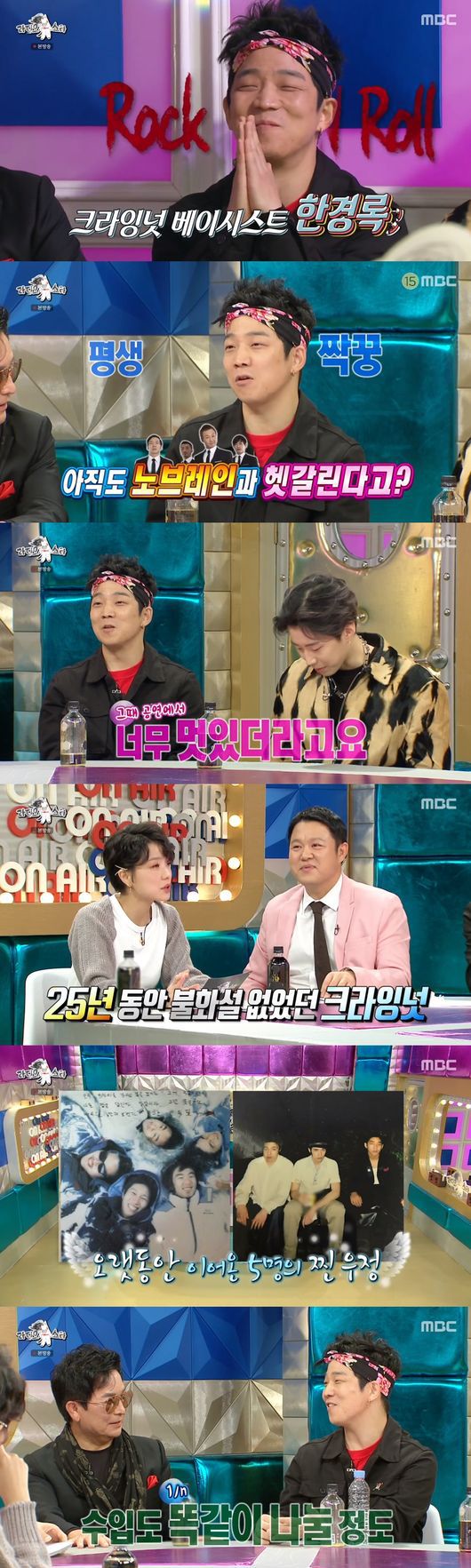 이날 한경록은 크라잉넛이 25년 동안 롱런한 비결에 대해 이야기했다. 한경록은 "직장 동료지만 우린 동네 친구들이다. 수입이 들어오면 수입을 n분의 1로 나눈다. 저작권도 나눈다"라고 말해 눈길을 끌었다. 한경록은 "나는 '밤이 깊었네', '룩셈부르크'를 작곡했다. 초창기때 아무 생각 없이 그렇게 했다"라고 말해 주위를 웃음바다로 만들었다.