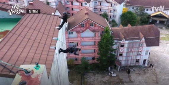 이날 방송에서 출연진들은 강도 높은 훈련을 이 리조트에서 받았다. 특히 리조트 지붕위에서 줄 하나를 의지한 채 수직으로 내려가는 훈련은 보기만 해도 아찔했다.