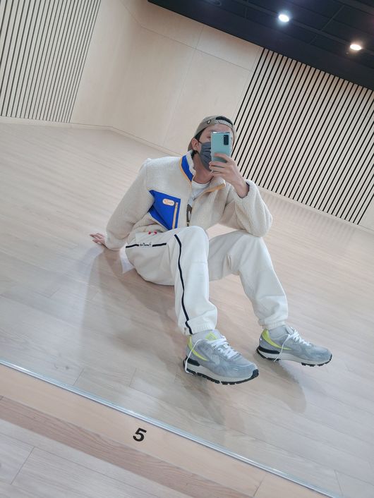 사진 속 방탄소년단 제이홉은 빅히트엔터테인먼트 연습실에서 거울 셀카를 찍고 있는 모습. 제이홉은 휴대폰으로 얼굴을 가리면서 소두를 인증했다. 또한 방탄소년단 제이홉은 앉아있음에도 숨길 수 없는 우월한 피지컬을 자랑하면서 글로벌 아미(팬클럽)들의 심장을 정조준했다.