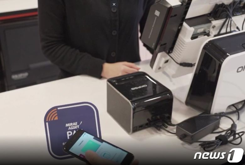 미래에셋페이를 이용해 아이폰으로 간편결제를 하는 모습. © 뉴스1 |