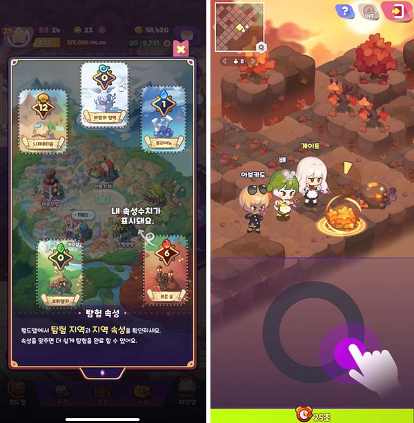 '마술양품점'은 마을 주변 다양한 지역에서의 '탐험'이 차별화 요소로 구현됐다. 상점에서 구매할 수 없는 희귀한 재료들과 인형 재료를 얻기 위해서는 탐험은 필수다. 자동탐험 기능도 지원돼 큰 부담 없이 즐길 수 있다.
