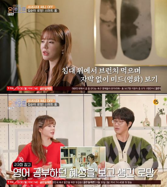 그러나 업데이트가 너무 오래 걸렸고 '침대에서 브런치를 즐기는 여유로움을 느끼며 자막 없이 미드를 보고 싶었다'는 써니의 꿈은 물거품이 됐다. 써니는 "'온앤오프' 이혜성 씨 편 보고 이런 로망이 생겼다"고 털어놨다.