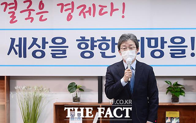 유승민 전 의원이 22일 페이스북을 통해 "문재인 대통령은 무능하고 비겁하다"고 비판했다. 지난 18일 오전 서울 여의도 국회 앞 태흥빌딩 '희망 22' 사무실에서 열린 기자간담회에서 발언하는 유 전 의원. /이새롬 기자