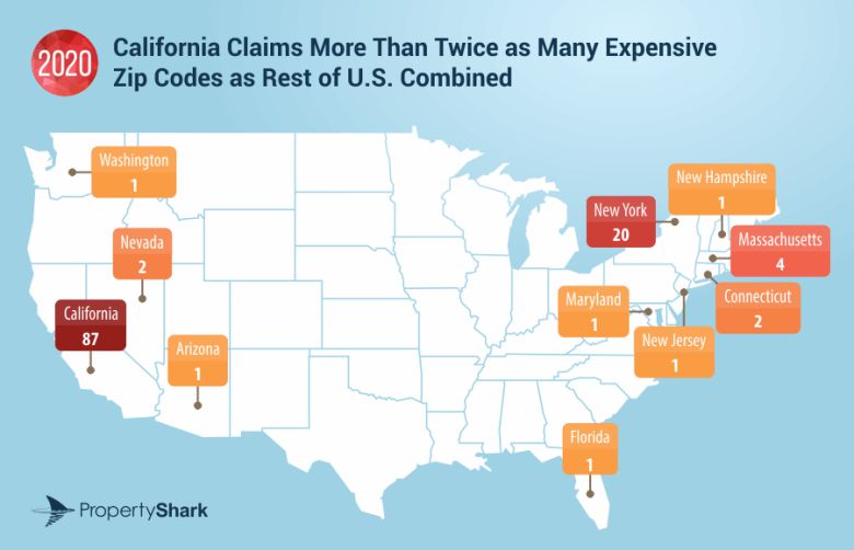 100위권에 포함된 같은 순위를 차지한 지역을 포함한 121개 지역 중 87곳은 캘리포니아주에 속한 지역이었다. 동부 뉴욕주가 20곳으로 그 뒤를 이었다.