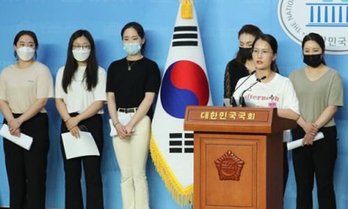 평창 동계올림픽에서 은메달을 딴 경북체육회 소속 여자컬링팀 '팀킴'의 주장 김은정 선수 등이 지난 7월 20일 오전 서울 여의도 국회 소통관에서 기자회견을 하고 있다. 연합뉴스