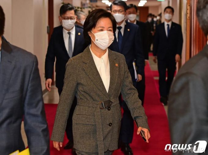 추미애 법무부 장관이 1일 오전 서울 종로구 정부서울청사에서 열린 국무회의에 참석하고 있다./사진=뉴스1 |