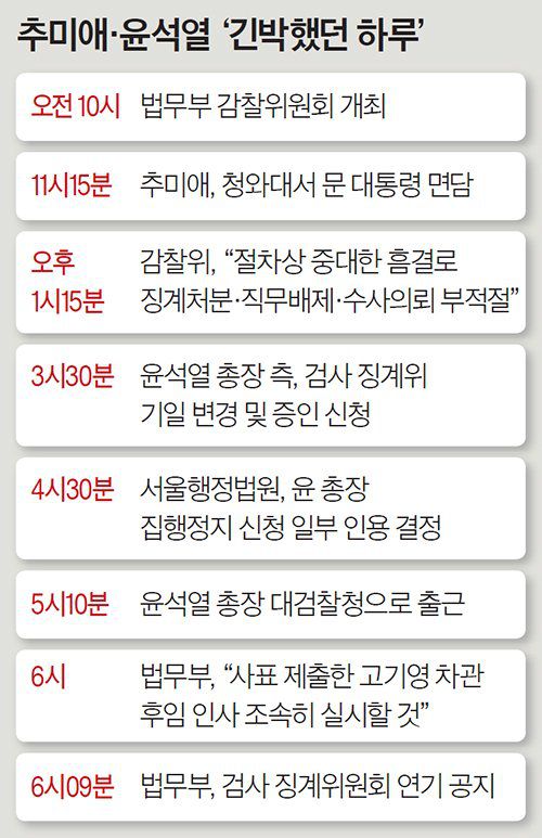 4일 법무부 징계위원회가 열리는 상황이라 소송의 이익 자체가 없다는 추 장관 측 주장에 대해서도 “징계 절차가 최종적으로 언제 종결될지 예측하기 어려운 상황에서 집행정지 필요성을 부정한다면 이는 신청인의 법적 지위를 불확정적인 상태에 두는 것”이라며 기각했다.