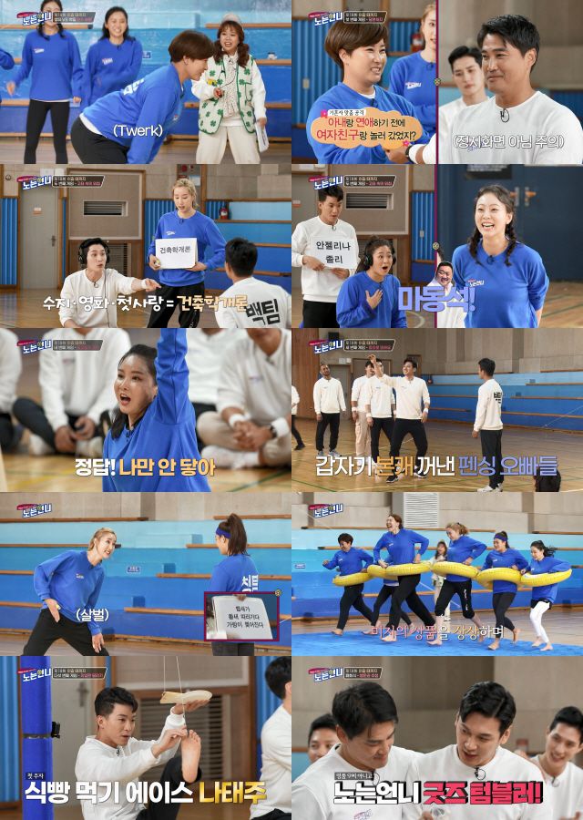 1일 방송된 티캐스트 E채널 ‘노는 언니’에서는 지난주에 이어 가을 운동회 2탄이 열렸다. 농구선수 박지수를 영입해 든든한 지원군을 얻은 청팀과 메이저리그 코치 홍성흔, 전(前) 농구선수 전태풍, 유도 메달리스트 조준호, 남자 펜싱의 금맥을 잇고 있는 구본길과 김준호, 태권트롯맨 나태주로 구성된 백팀은 한 치의 양보도 없는 대결로 운동회를 흥미진진하게 이끌었다.