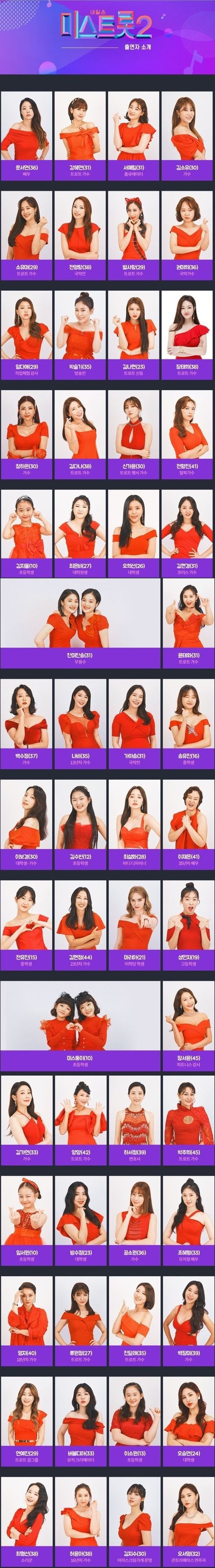 [OSEN=하수정 기자] '미스트롯2'에 출연하는 최종 참가자들의 프로필이 공개됐다.