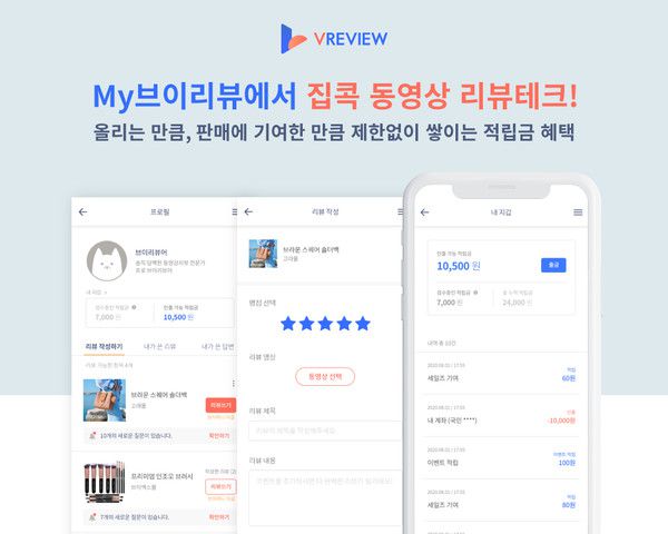 이메일로 간편하게 가입 후에는 마이 브이리뷰 플랫폼에서 어떤 동영상 리뷰를 했는지 목록을 일목요연하게 관리하고, 얼마의 적립금이 모였는지까지 한눈에 확인할 수 있다. 리뷰를 통해 쌓인 브이머니는 만 원 이상부터 현금 인출 가능하며, 본인 계좌로 출금 신청할 수 있다.