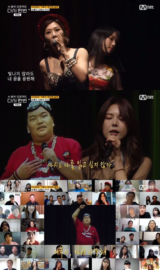9일 첫 방송된 Mnet '다시 한번'은 그리운 아티스트의 음성과 모습을 복원해 새로운 곡과 무대를 선보이는 프로젝트. 1회는 2008년 세상을 떠난 그룹 거북이의 리더 故터틀맨 임성훈이 등장, 거북이의 12년 만의 완전체 무대가 공개됐다.
