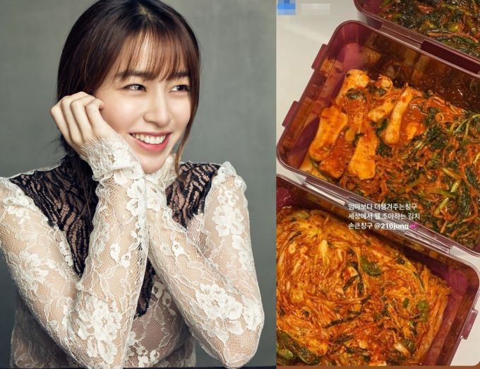 10일 이민정은 자신의 인스타그램 스토리에 친구가 올린 사진을 리그램했다. 사진에는 먹음직스러운 김치가 가득 담긴 김치통이 찍혀 있다.