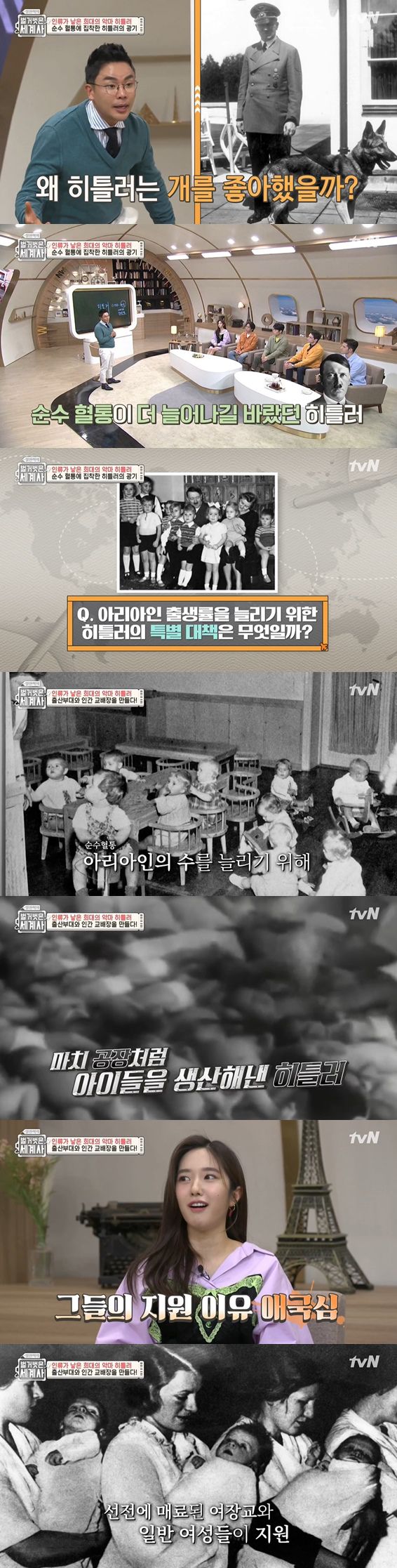 12일 첫 방송된 tvN '설민석의 벌거벗은 세계사'(이하 '벌거벗은 세계사')에는 설민석, 은지원, 이혜성, 존박, 다니엘, 알베르토가 출연해 랜선 다크 투어를 떠났다. 이날의 주제는 최악의 독재자 아돌프 히틀러였다.
